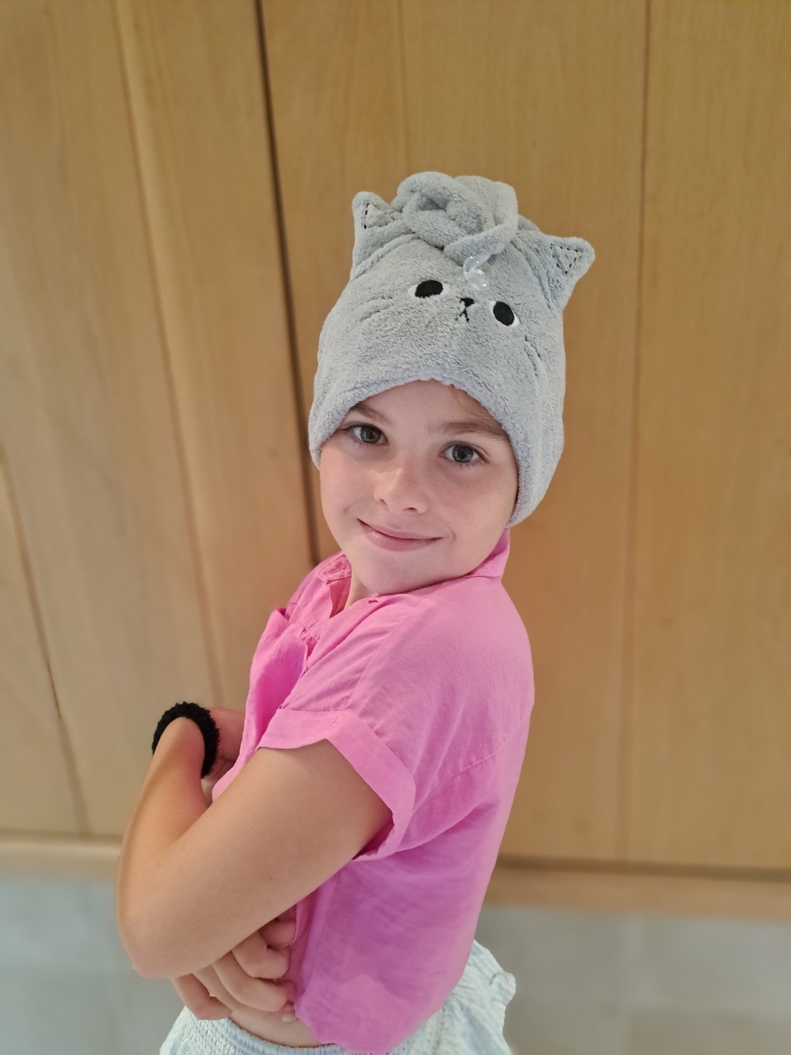 Maak van je haarverzorgingsroutine een zacht en vrolijk moment met onze hoofdhanddoek in de vorm van een poes! Deze prachtige handdoek is gemaakt van heerlijk zachte badhanddoekstof die comfortabel aanvoelt en uitstekend vocht opneemt. Perfect om je natte haren na het douchen eenvoudig in te wikkelen en ze sneller te laten drogen, zonder föhn. Dankzij het slimme wikkelontwerp met handig knoopje blijft de handdoek stevig op zijn plaats zitten, zodat je ondertussen je make-up kunt doen, ontspannen of aan je ochtendroutine kunt beginnen. Het schattige kattenontwerp met oortjes maakt deze handdoek niet alleen praktisch, maar ook een echte eyecatcher in de badkamer.