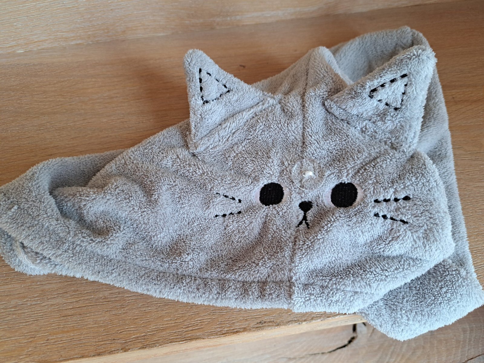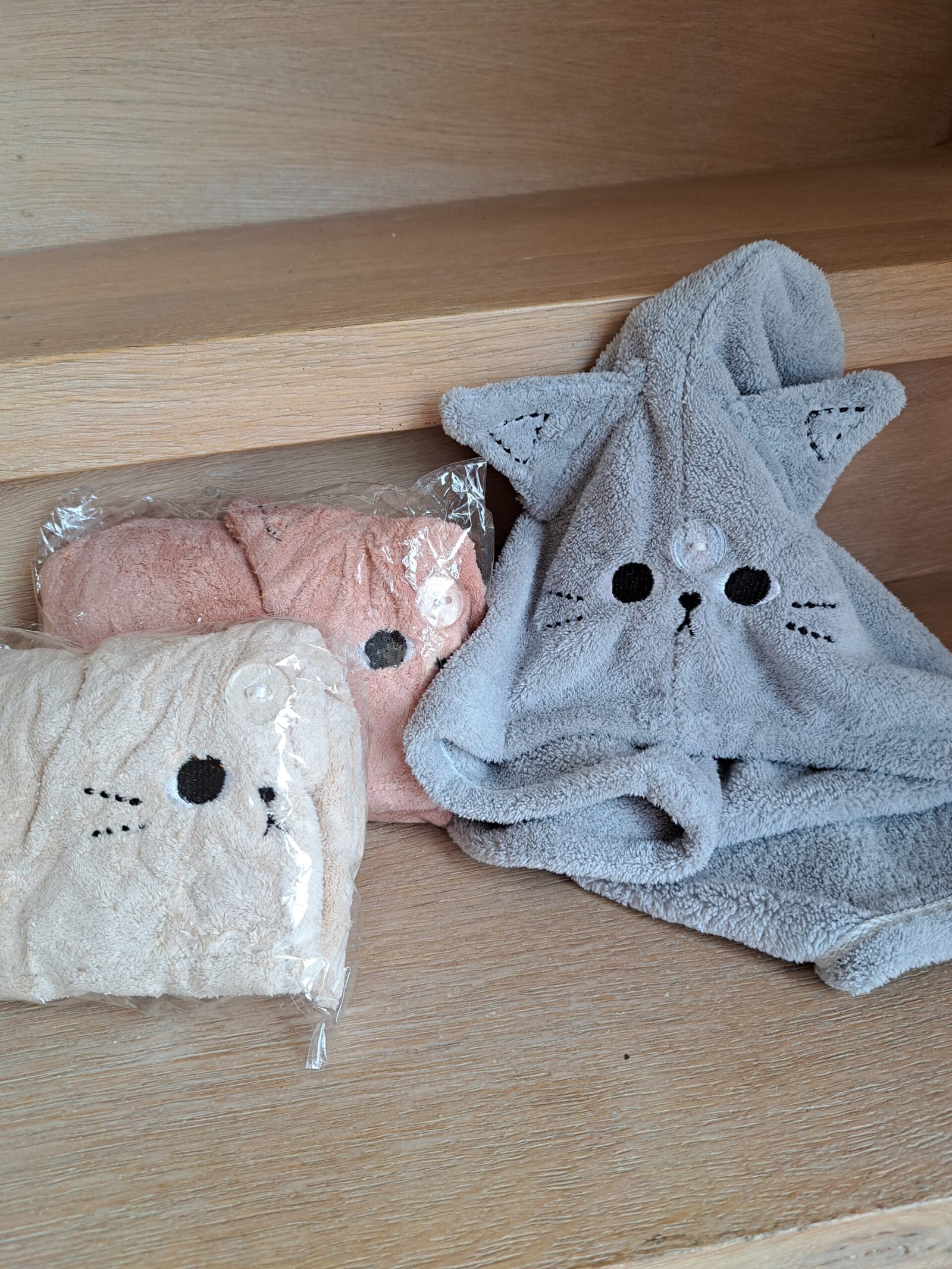 Beschikbaar in drie stijlvolle kleuren: grijs, roze en beige. Geschikt voor kinderen én volwassenen die houden van een speelse en comfortabele touch. Of je hem nu voor jezelf koopt of als cadeautje geeft, deze poes-handdoek combineert stijl, zachtheid en handigheid in één!