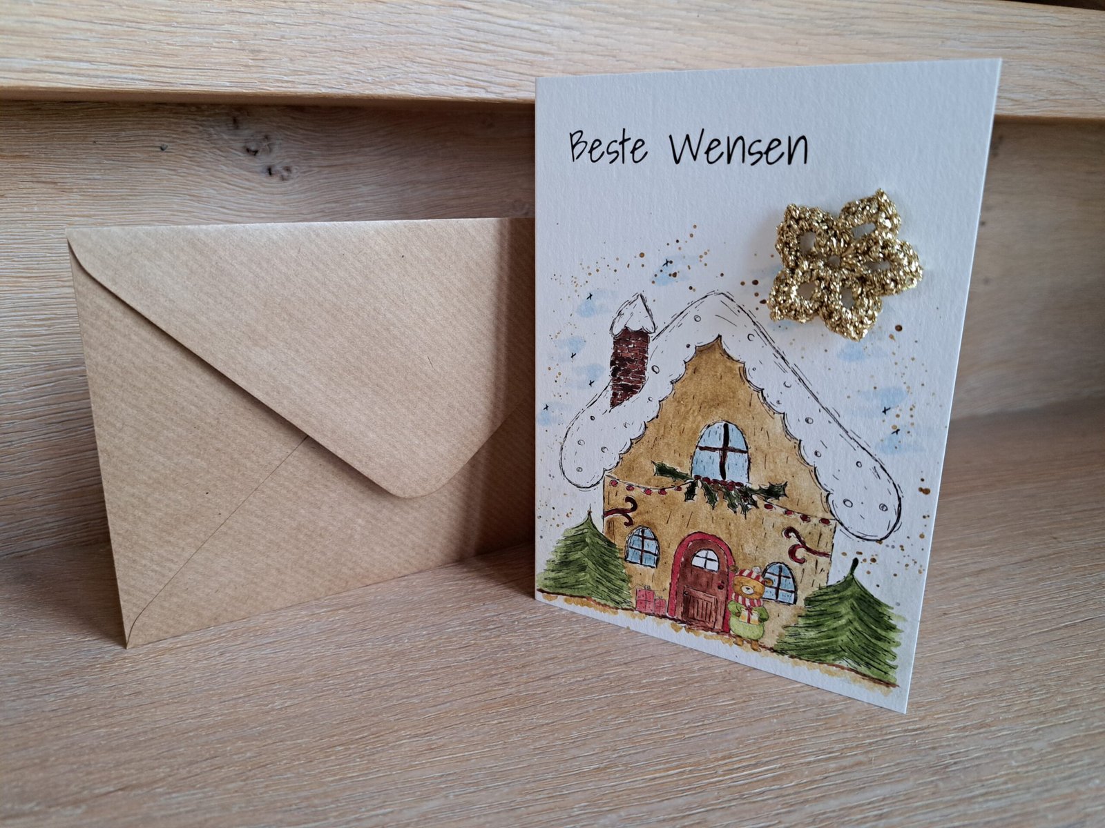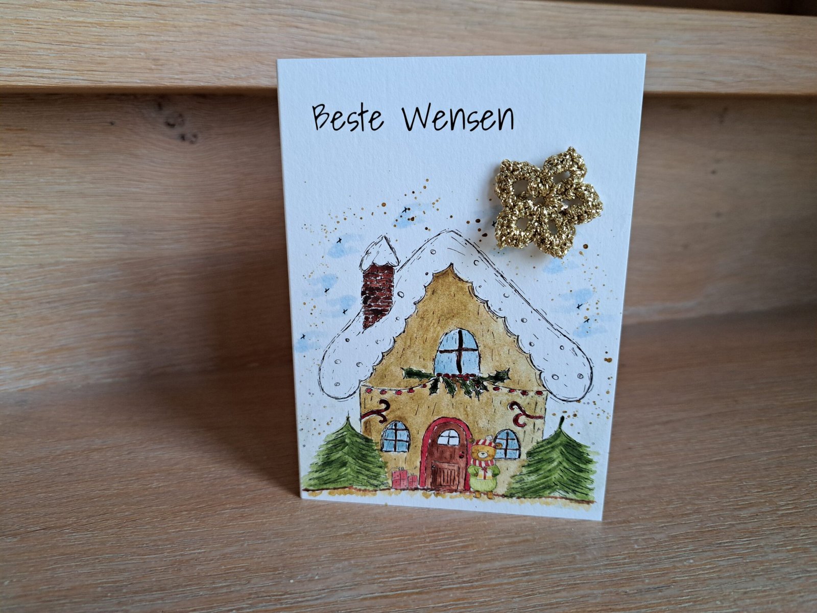 Kaartje Met Gehaakt Detail -Beste Wensen Huisje