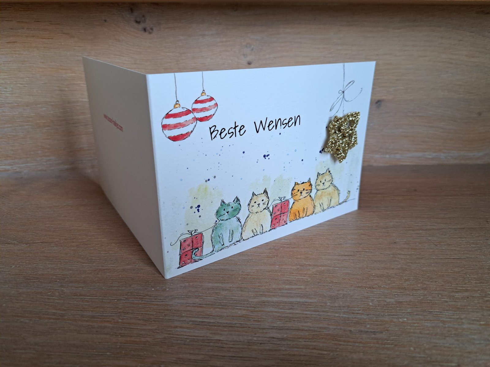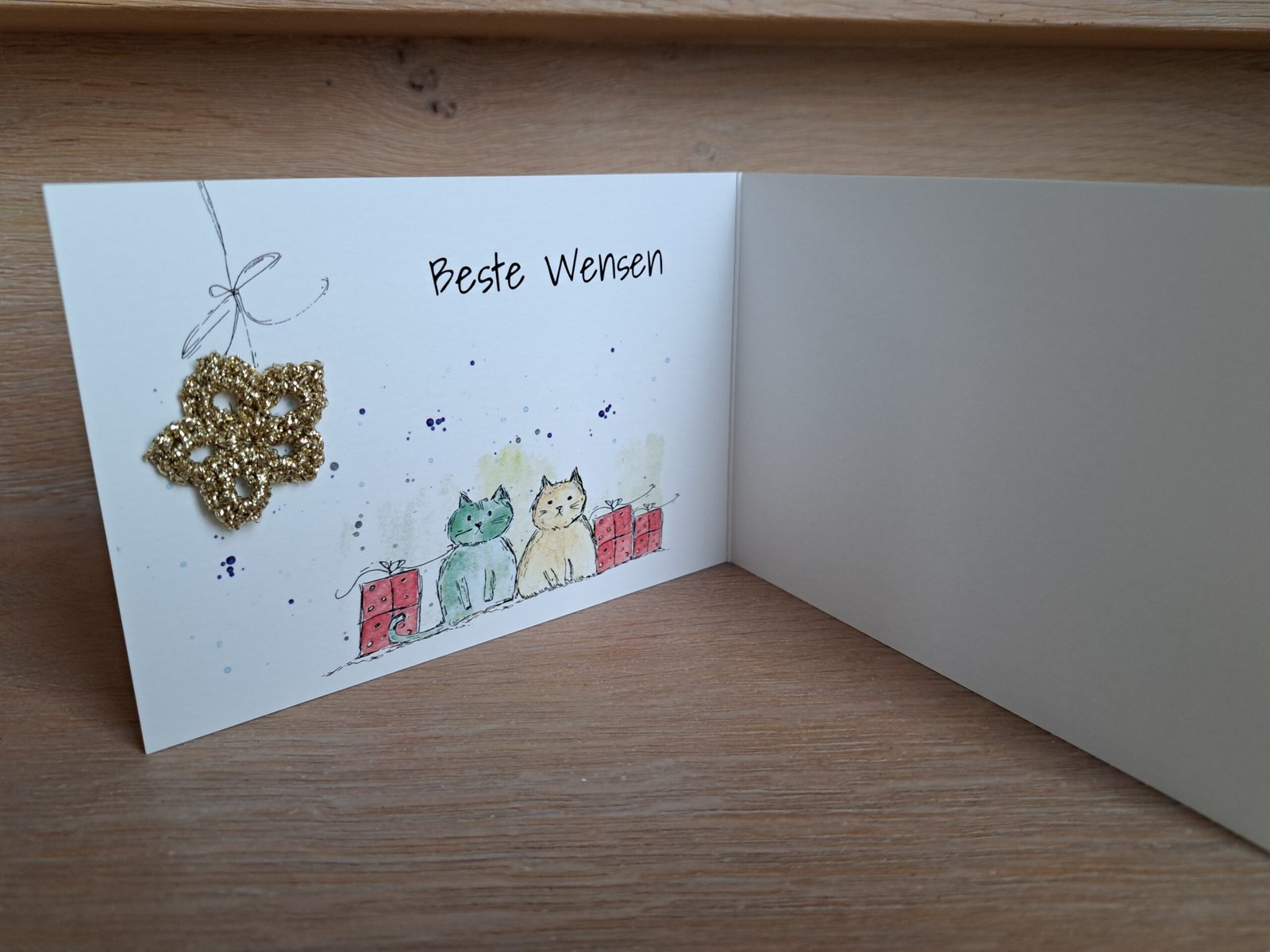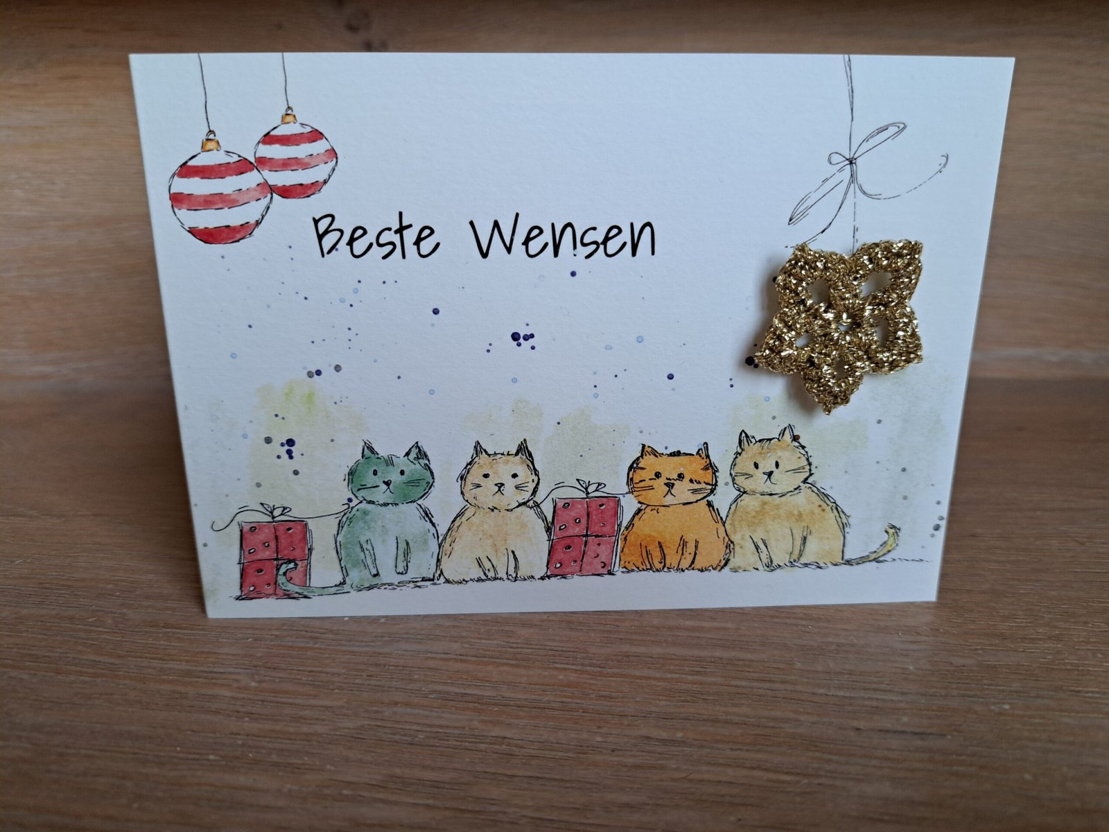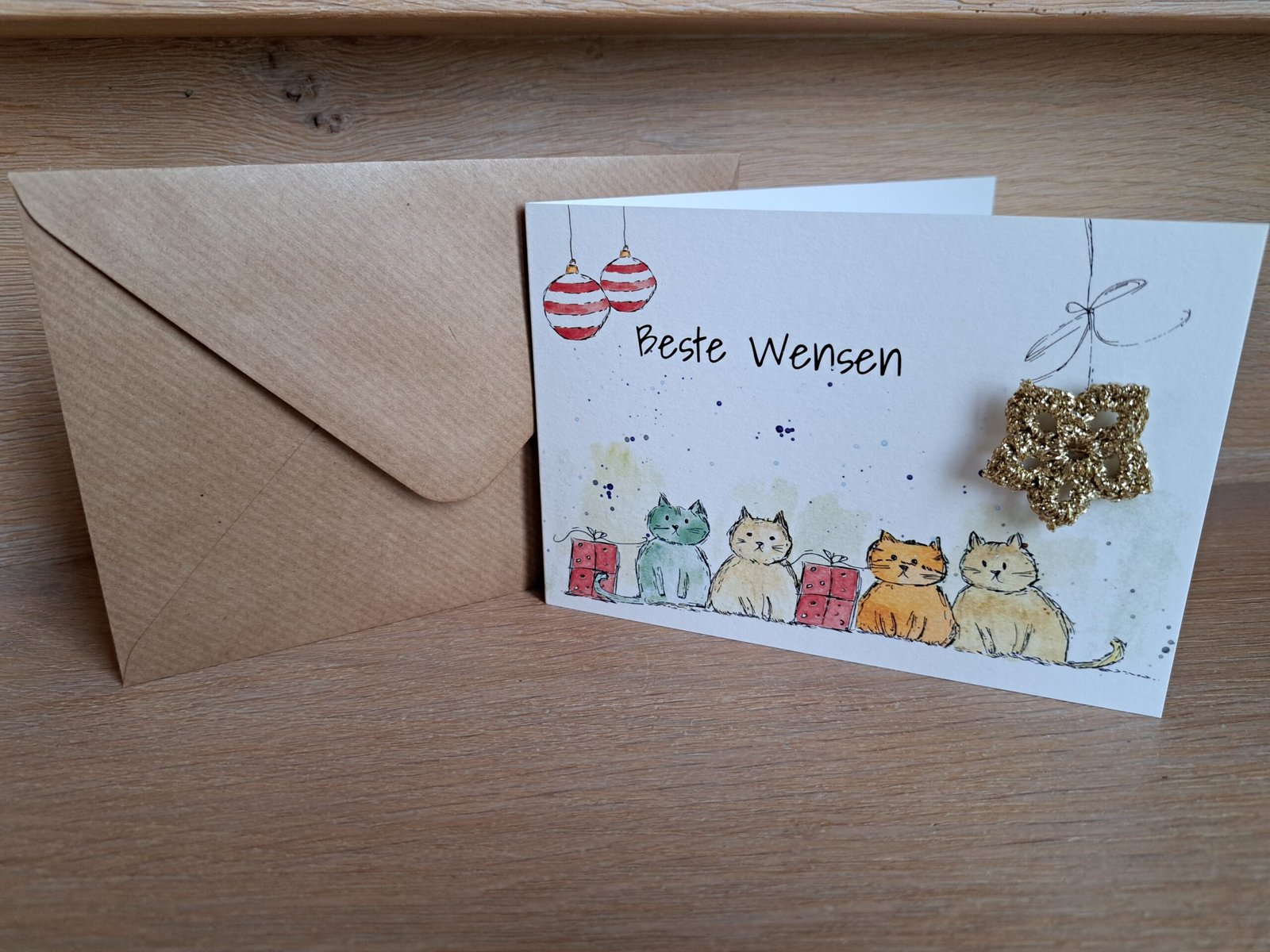 Kaartje Met Gehaakt Detail – Beste Wensen Katten Op Een Rij