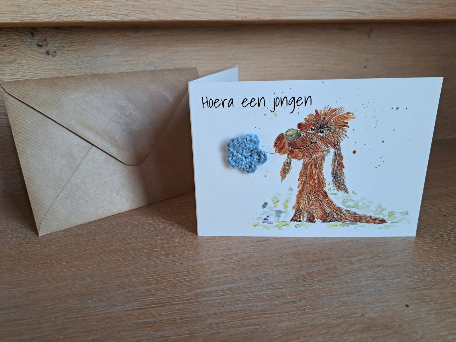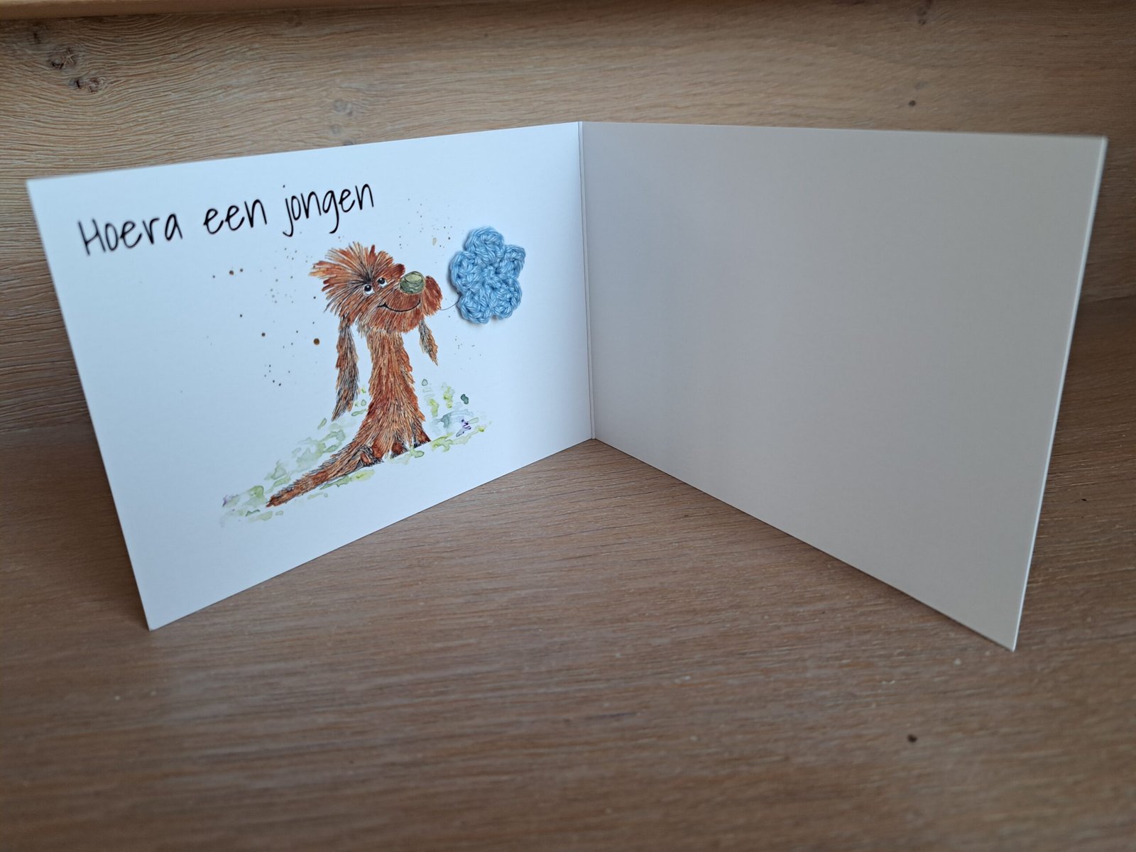 Kaartje Met Gehaakt Detail – Hond Geboorte Jongen