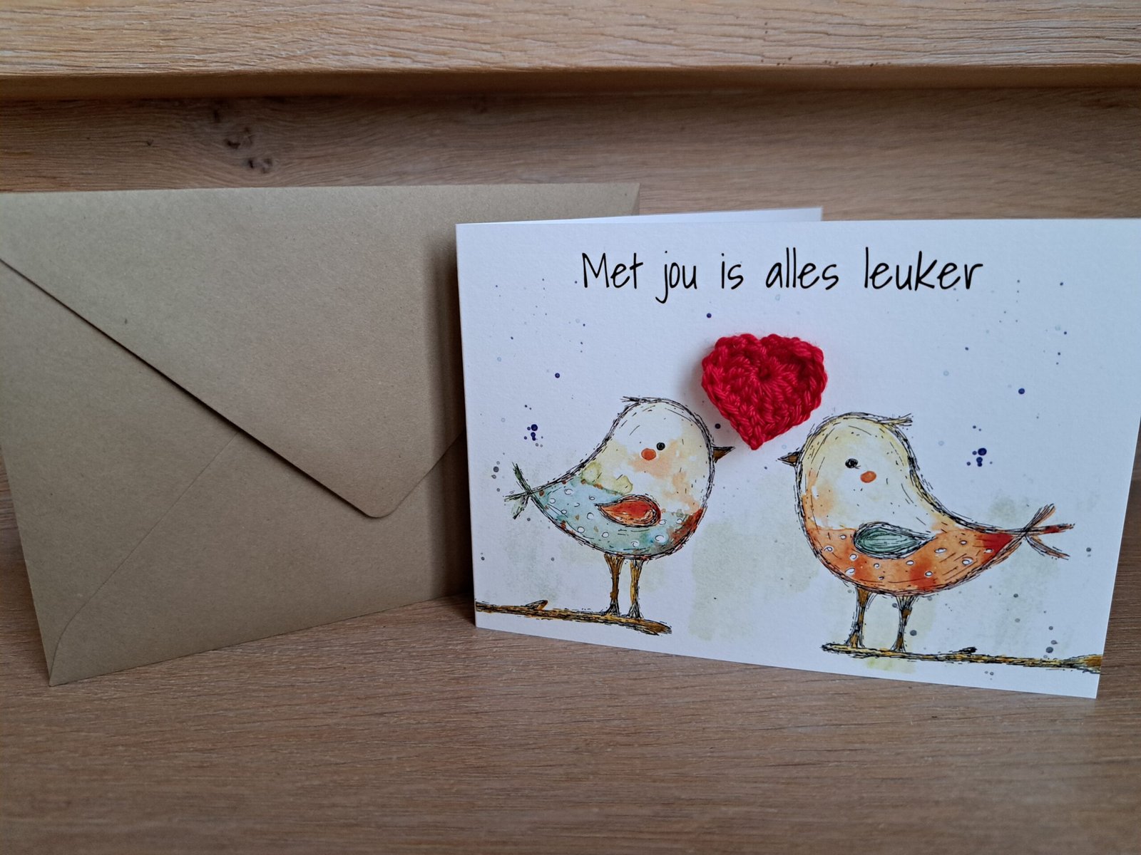 Kaartje Met Gehaakt Detail – Liefde Vogels