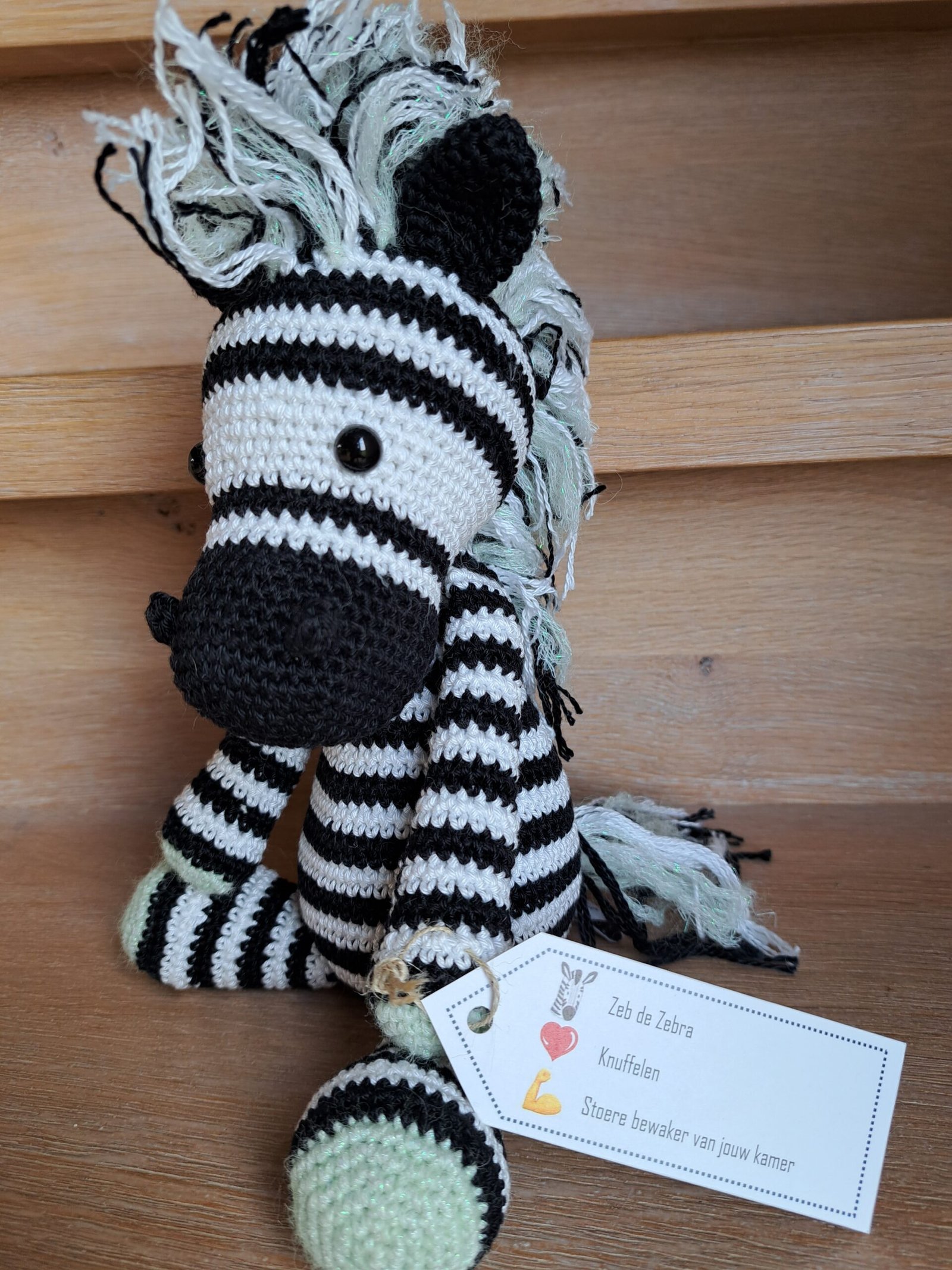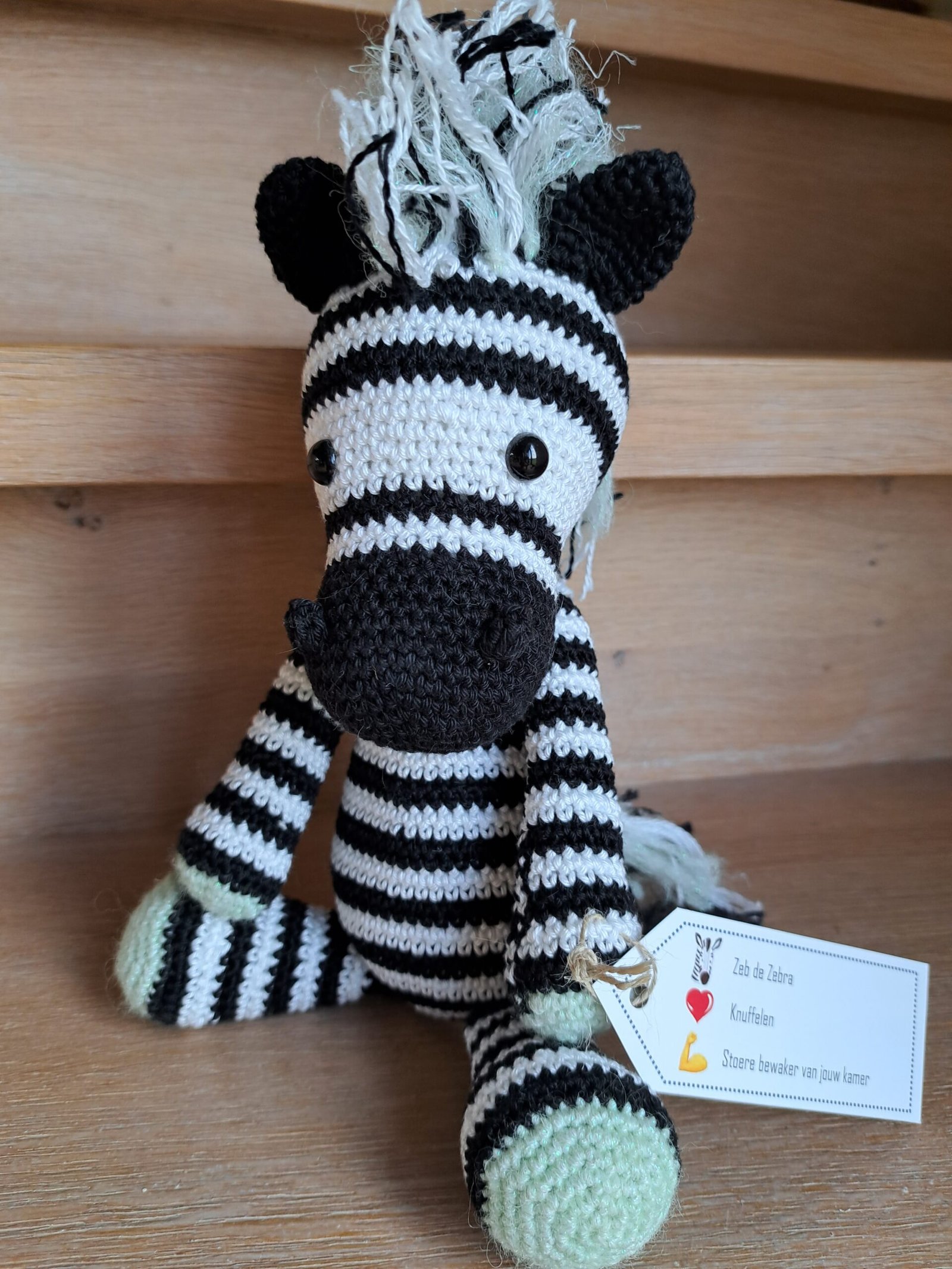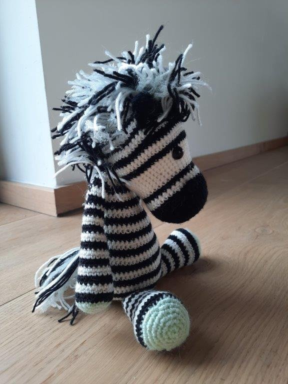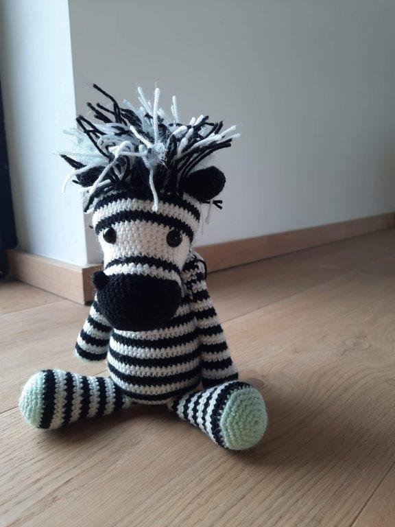 Deze gehaakte zebra is meer dan alleen een knuffel; hij is een bron van vreugde en troost. Zijn grappige uitstraling en charmante verschijning maken hem tot een onmisbare metgezel voor zowel jong als oud.